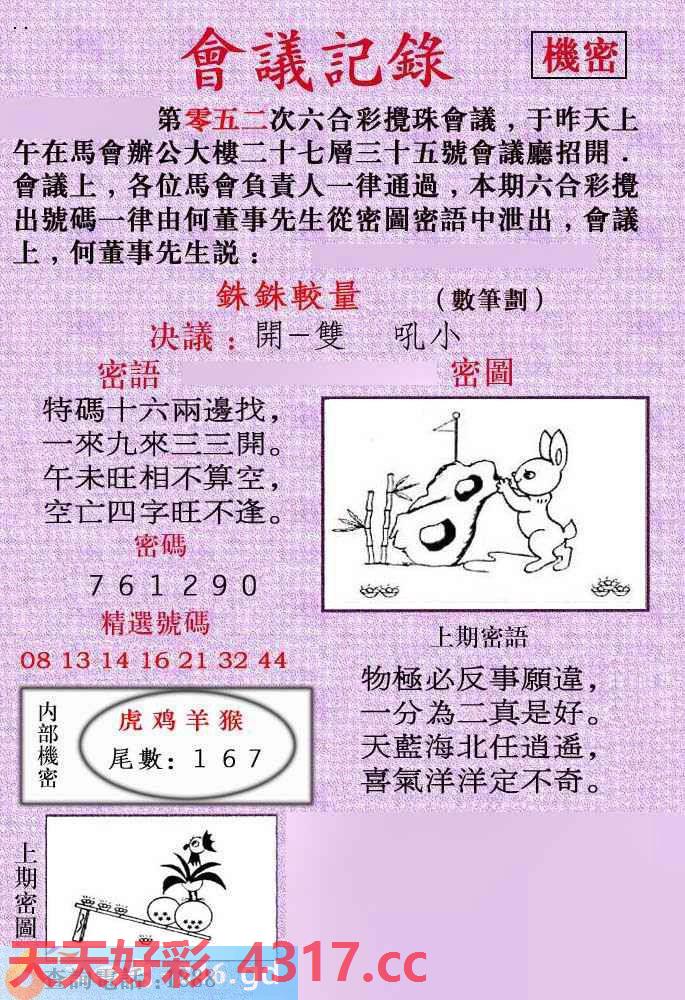 052期‖:会议记录,密语,密图,精选号码,解上期密语